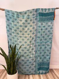 Our Cotton Kantha Quilts are 3 layers of vintage saris hand stitched together by women in India who are trying to rise out of poverty.